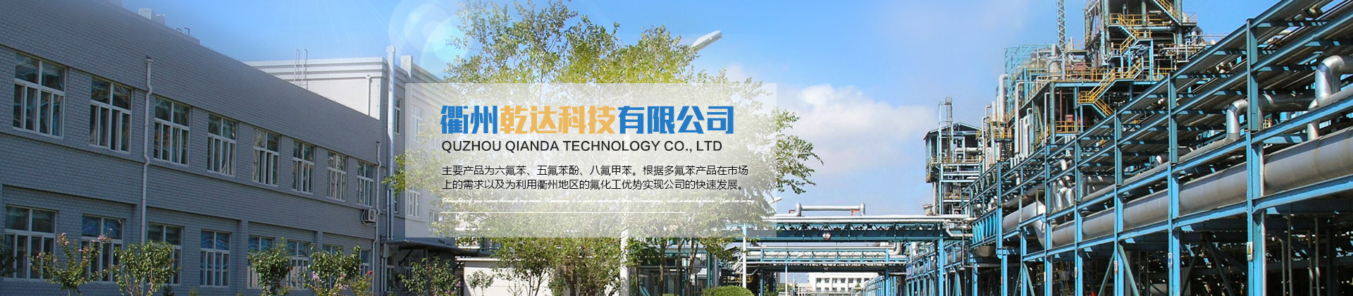 衢州乾達(dá)科技有限公司成立于2013年8月,注冊地浙江省衢州市柯城區(qū)華楓路16號,位于衢州市高新技術(shù)產(chǎn)業(yè)園。公司運(yùn)用國內(nèi)首創(chuàng)工藝進(jìn)行多氟苯及其衍生物的研發(fā)并實現(xiàn)了工業(yè)化量產(chǎn)。